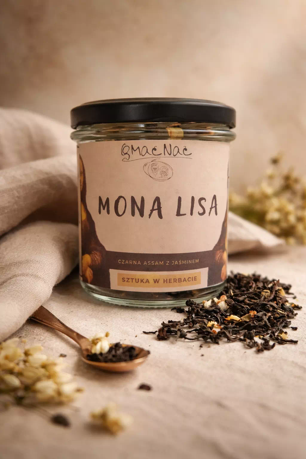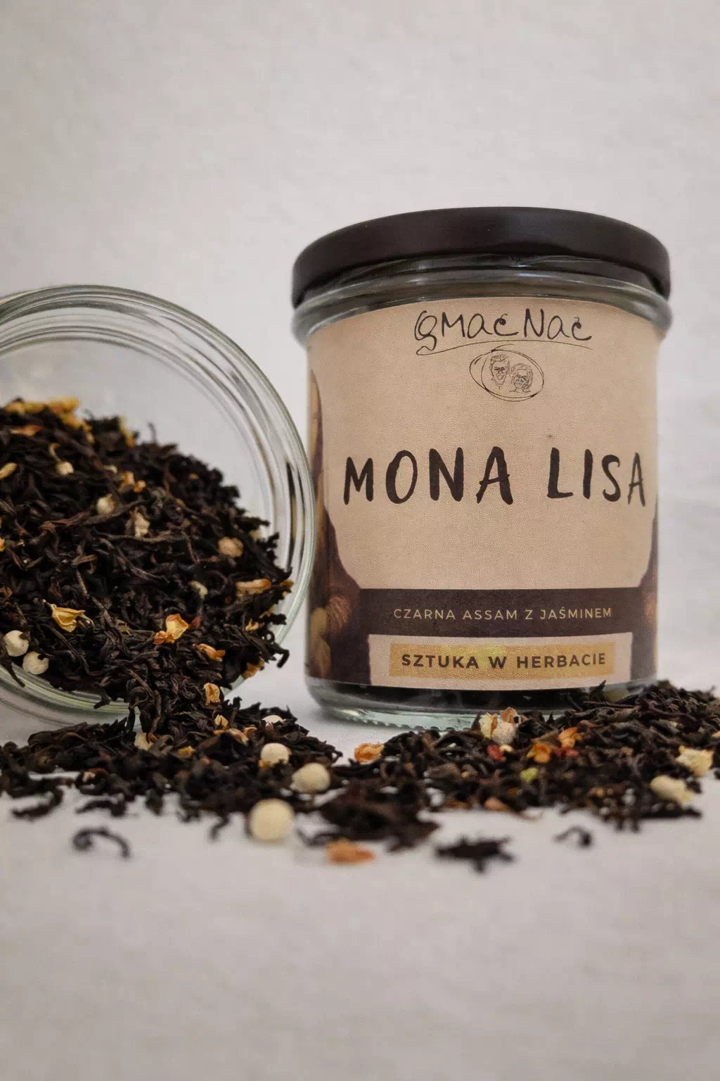 Elegancka czarna herbata Assam z jaśminem i nutą białego pieprzu, inspirowana ponadczasowym spokojem obrazu „Mona Lisa” Leonarda da Vinci.