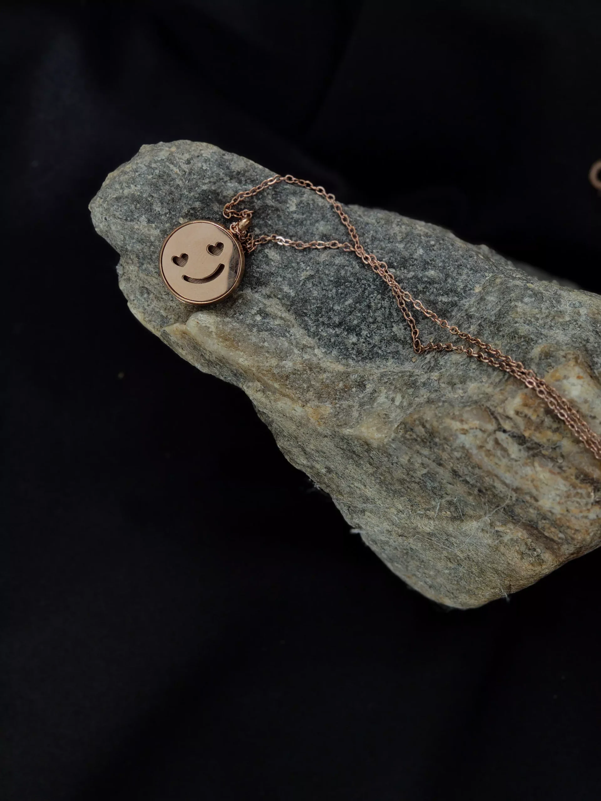 Złoty naszyjnik aromaterapeutyczny z zawieszką (15 mm) z motywem uśmiechu na łańcuszku o długości 50 cm.