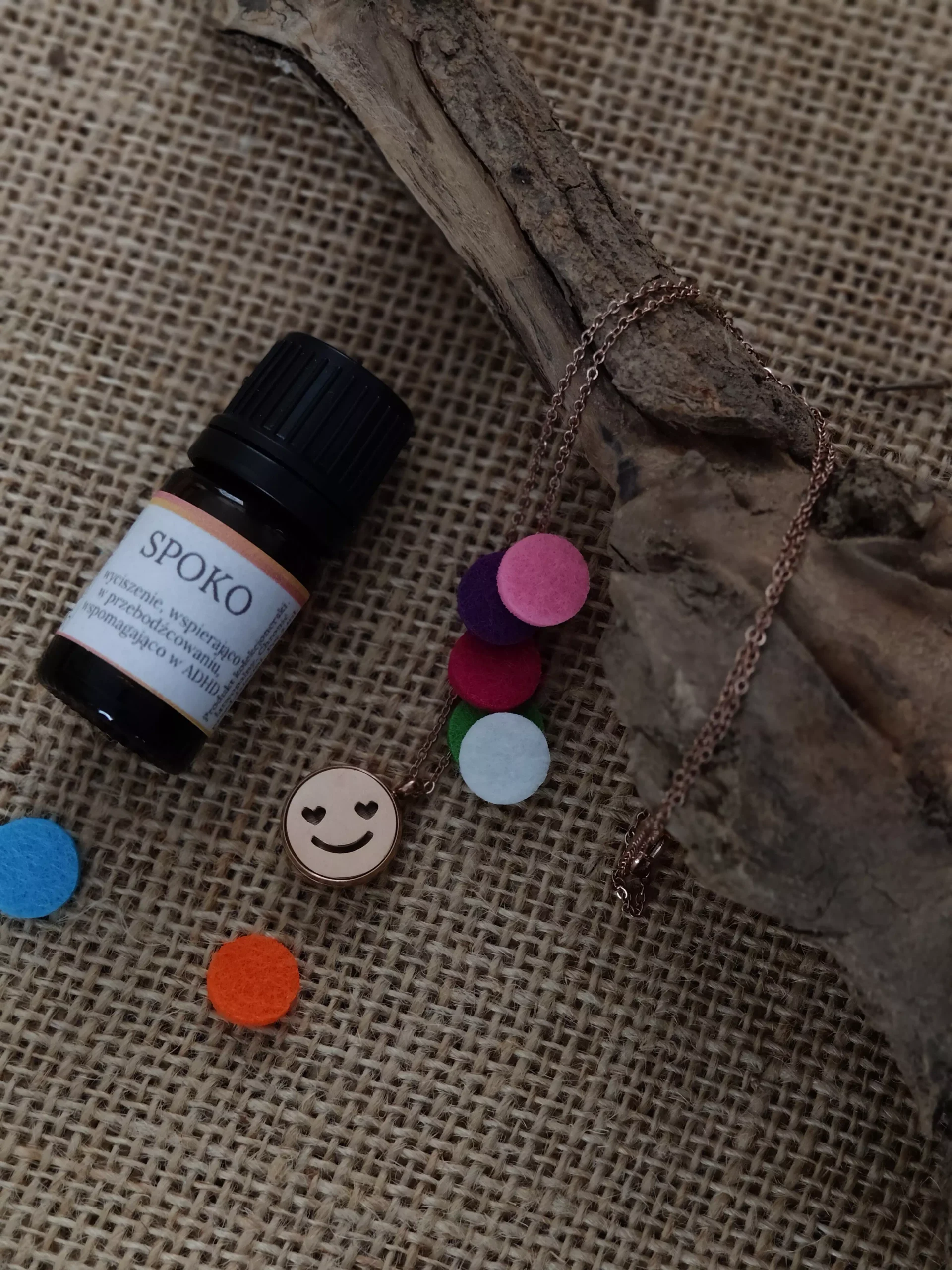 Wewnątrz medalionu znajduje się filcowa wkładka przeznaczona do nasączenia olejkiem eterycznym. Wystarczy kilka kropli, aby zapach stopniowo uwalniał się przez ażurowy wzór i towarzyszył przez wiele godzin. W zestawie znajduje się komplet kolorowych wkładek, umożliwiających łatwą zmianę zapachu.