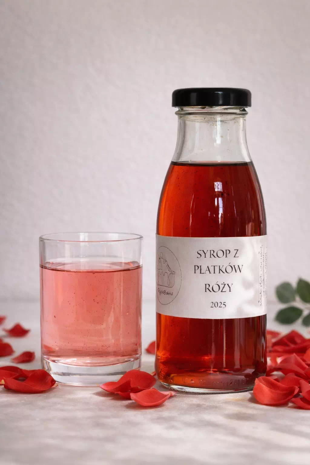 Syrop powstaje poprzez powolne macerowanie płatków róży, dzięki czemu zachowuje ich charakterystyczny, intensywnie kwiatowy aromat oraz naturalny kolor.